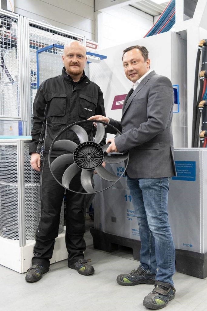 In Crimmitschau, fan propellers and frames for the automotive industry have been manufactured since 1993, since 2012 in the name of the newly established Wirthwein Crimmitschau GmbH & Co. KG. Today, this company manufactures technically advanced components for the automotive industry with 120 associates on corporate premises of about 21,000 m², of which almost half is used as storage and production area, with fan propellers and fan frames still constituting the company’s core competences. The range of fans includes both axial ventilators for thermal motor control and radial ventilators for conditioning systems in cars. These components are very demanding in terms of tolerances. The balancing requirements for radial ventilators are particularly stringent, since here even the slightest imbalance will cause unpleasant noises in car interiors.