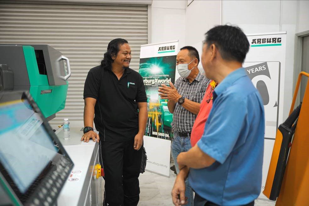 An important milestone for Arburg’s presence in Asia: On 23 September 2022, the subsidiary in Malaysia celebrated its 30th anniversary. Visu Nagappa, Branch Manager Arburg Malaysia, David Chan, Managing Director Arburg ASEAN, and Ruben Sander, Director Operations Arburg ASEAN, expressed their gratitude for the trust and support from customers and employees. The more than 100 guests invited to the celebration were able to see the benefits of the Gestica machine control system for themselves in the showroom and then celebrated the anniversary in Oktoberfest style.