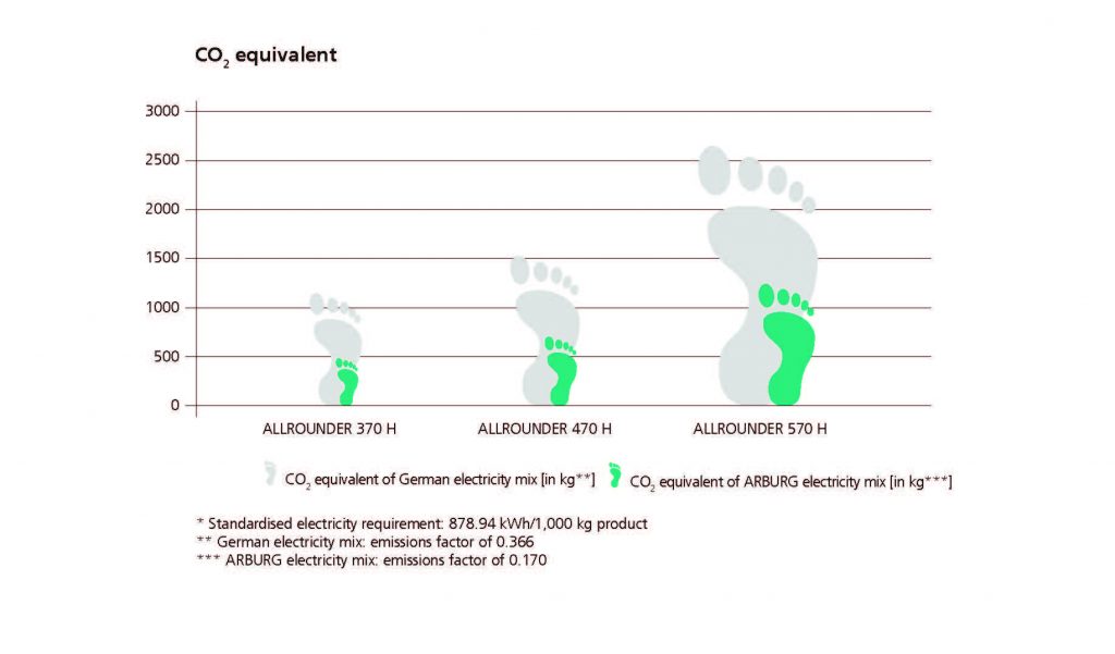 Arburg has been working intensively on the topic of sustainability and resource efficiency for a very long time. As a supplier of Allrounder injection moulding machines, the machine manufacturer is increasingly active in evaluating climate protection activities along the entire value chain for its customers. On the basis of ISO TS 14067:2018, a standard that defines a product’s greenhouse gas emissions or product carbon footprint (PCF), Arburg has investigated how the PCF and specific energy requirements of its injection moulding machines can be calculated.