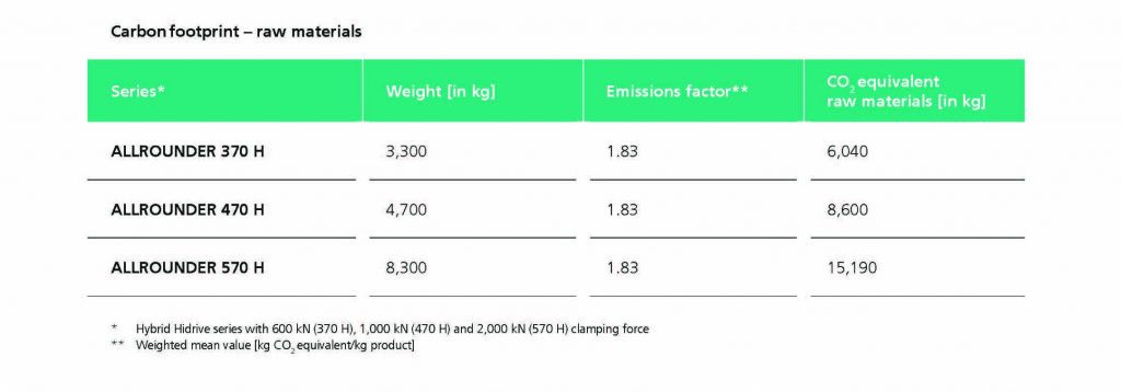 Fig. 2: To calculate the CO2 emissions of an Allrounder in terms of raw materials, its net weight is simply multiplied by an emissions factor of 1.83 as determined by Arburg.