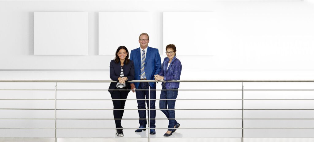 By acquiring AMK Arnold Müller GmbH & Co. KG, Arburg Partners Juliane Hehl, Michael Hehl and Renate Keinath (from left) are investing in the future of electric injection moulding machines.