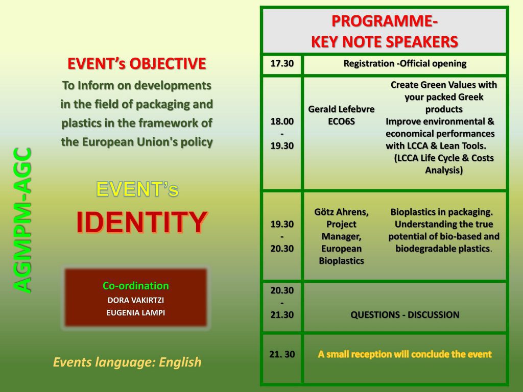 “Create Green Values with your Packed Greek Products”.