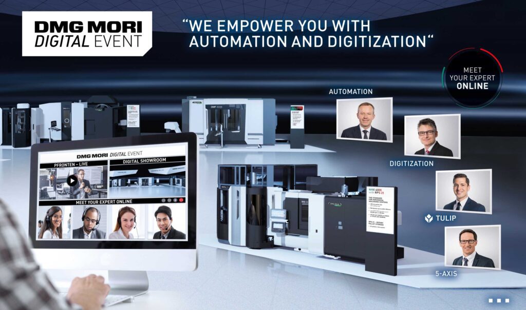 From February 2 to 4, 2021, DMG MORI will offer their customers and interested parties a contemporary alternative to the traditional open house at their Pfronten location. On the event platform digital-event.dmgmori.com, the technology leader will be showing live presentations as well as expert talks on the industry’s groundbreaking trends and developments – available in six languages and supplemented by market-specific content. To kick things off DMG MORI will present the latest technological developments with the world premieres 2021. The other days will focus on automation and digitization. In this way, the machine tool manufacturer is underlining its position as a pioneer in the future fields along the entire value chain for future-proof manufacturing for its customers. Under the motto “Meet your Expert”, visitors have the opportunity to discuss specific topics online with their contacts. In the Digital Showroom, DMG MORI presents over 25 exhibits as realistic high-tech machines – many of them as automated manufacturing solutions.