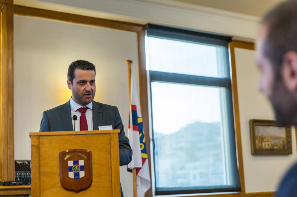 Next to speak was Mr. Svetoslav Staykov, who is responsible for SKF Marine Monitoring Solutions. He presented the SKF Marine Condition monitoring kits that crew can use to collect vibration data measurements. The collected ship data can be transferred to the SKF One Global Cloud, from which it can be accessed and analyzed by SKF experts to support the ship’s engineer or the fleet technical manager, or directly by customers. Finally, he talked about the bearing faults and consumption which are classified using several statistical features as input to machine learning techniques.