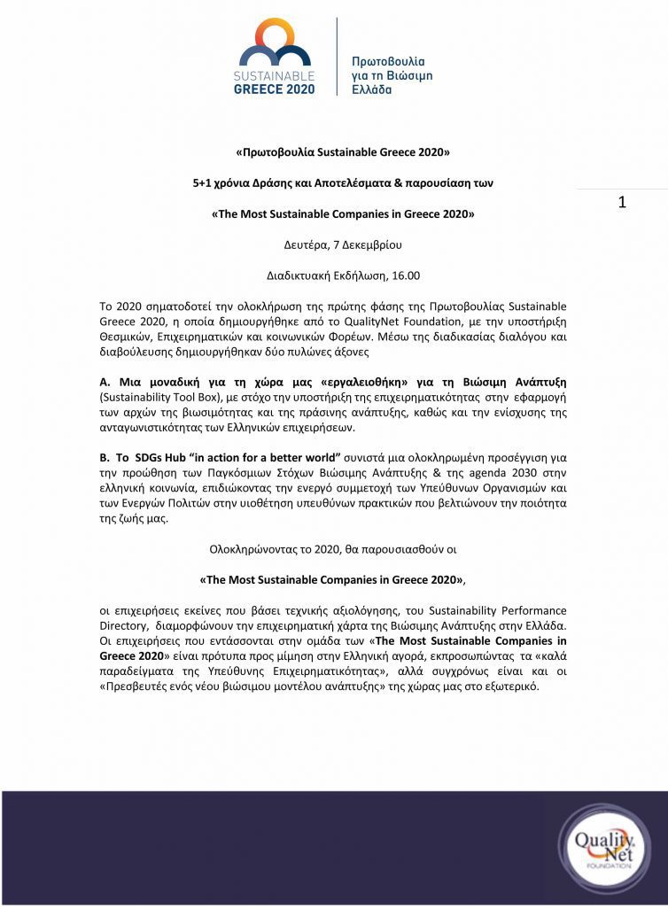 Εκδήλωση: The Most Sustainable Companies in Greece 2020